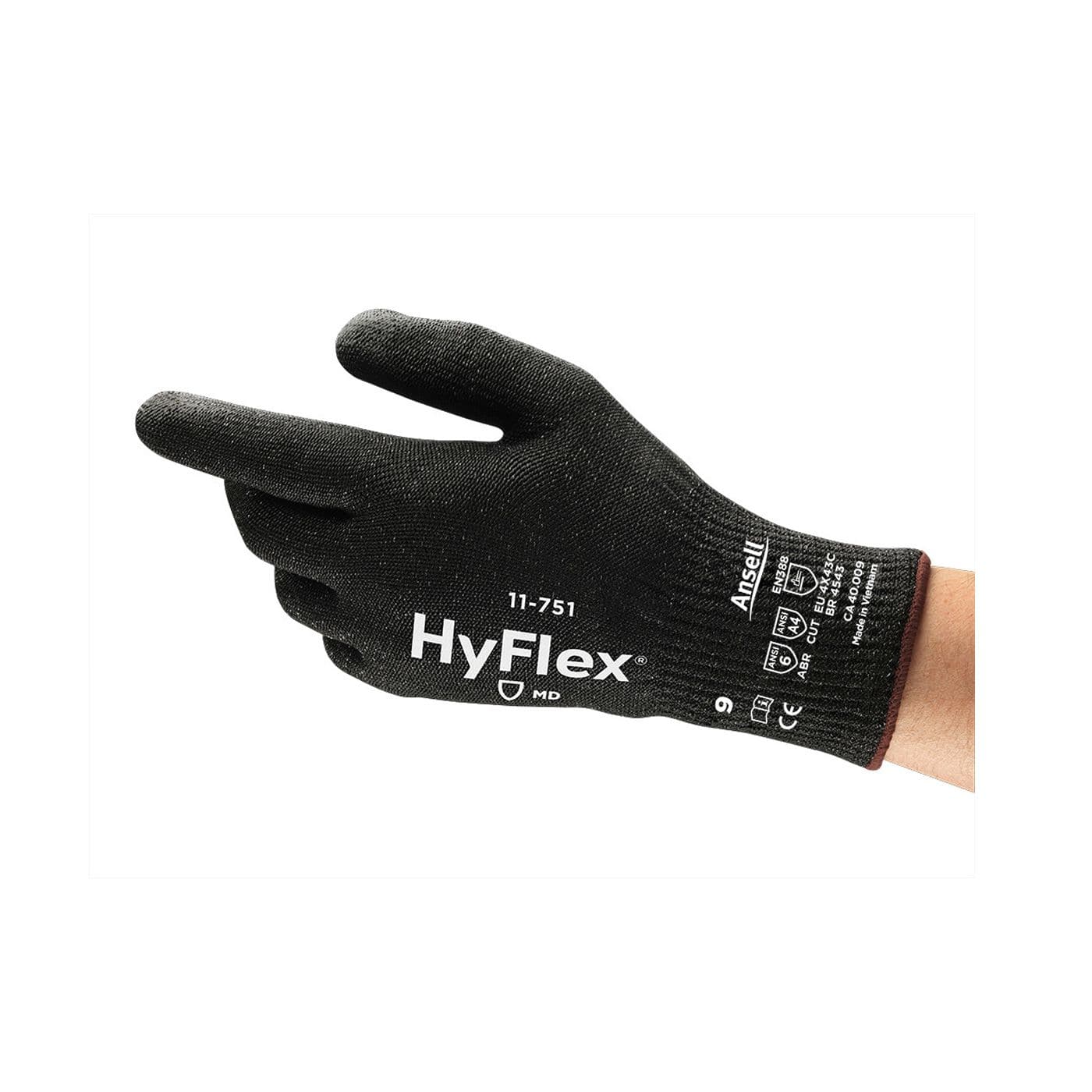 Les gants enduits de PU HyFlexMD 11-751 présentent une durabilité supérieure, avec une résistance à l’abrasion de niveau 4 de la norme EN et de niveau 6 de la norme ANSI. Le fil INTERCEPTMC Cut Resistance Technology leur confère également une résistance à la coupure EN ISO C/ ANSI 4, ce qui les rend plus sûrs et prévient les blessures sur le lieu de travail. Les gants industriels HyFlexMD 11-751 ont été conçus avec un masquage intégré de la saleté, pour une plus grande longévité. Ces gants de sécurité sont officiellement conformes aux normes Centexbel EN 420, pour les exigences générales, et EN 388, pour les risques mécaniques.