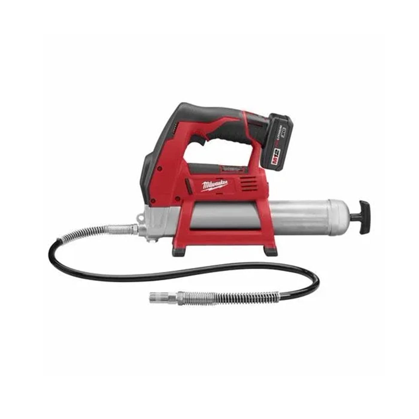 Le pistolet graisseur sans fil M12MC à batterie au lithium-ion produit la plus grande pression de fonctionnement dans sa catégorie pour vous aider à accomplir des tâches à service intense et éliminer les temps morts. Il peut produire une pression de fonctionnement maximale de plus de 55,2 MPa (8 000 lb/po²) pour la machinerie lourde, les applications par temps froid et les raccords de graissages obstrués. Le bloc-piles M12 REDLITHIUMMC vous permet de distribuer jusqu’à sept cartouches de graisse par charge et il est compatible avec une gamme d’outils Milwaukee pour une polyvalence accrue au travail. Une poignée ergonomique et le faible poids procurent un confort accru durant l’utilisation prolongée, et le rangement de tuyau intégré ainsi qu’une bretelle offrent la commodité et réduisent les dégâts. L’ensemble contient un bloc-piles de 12 volts à grande capacité, un chargeur de 60 minutes, tube flexible de 91,4 cm (36 po) avec détendeur à ressort et raccord de graissage, et un coffret de transport.