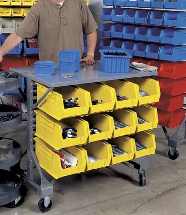 Chariots à bacs et postes de travail mobiles