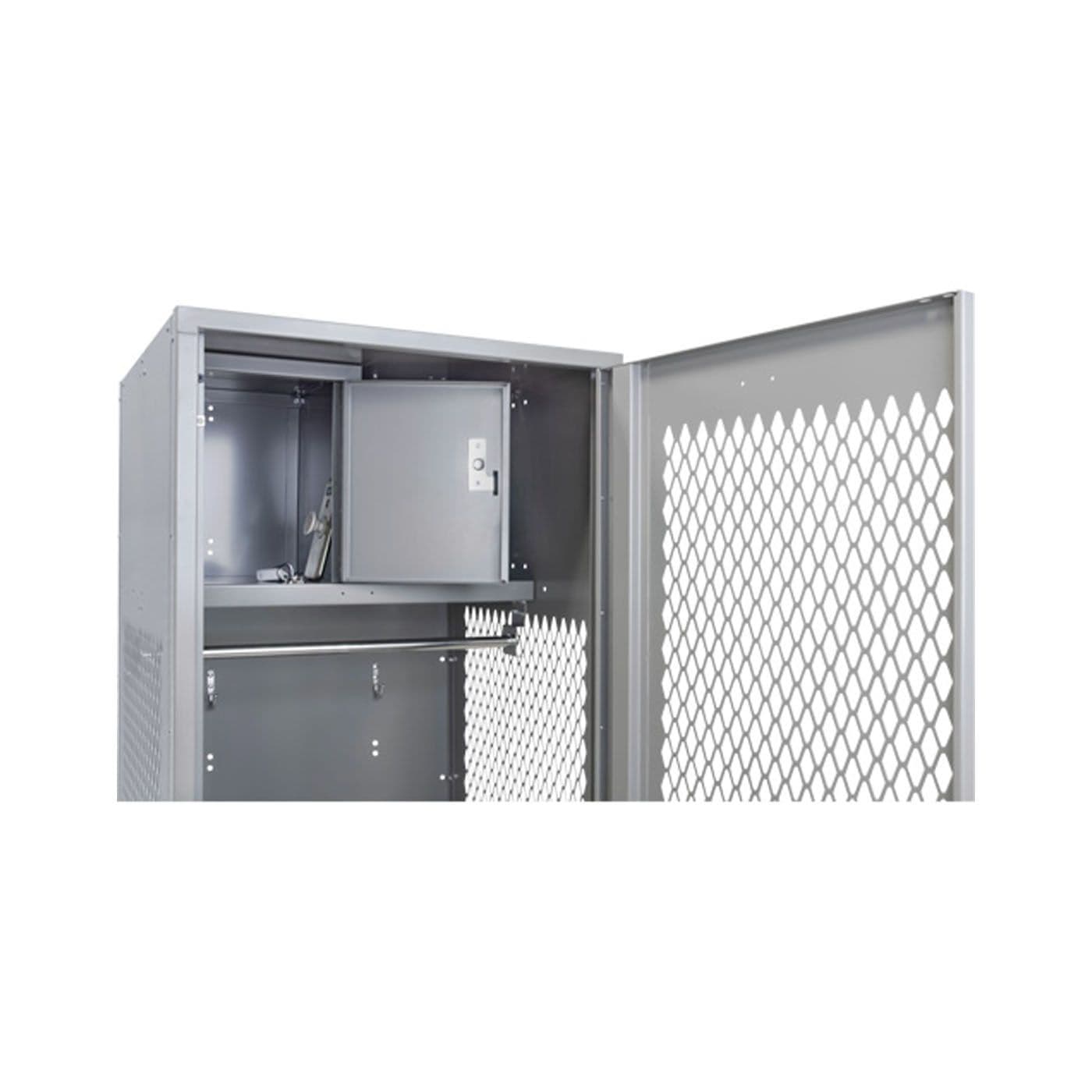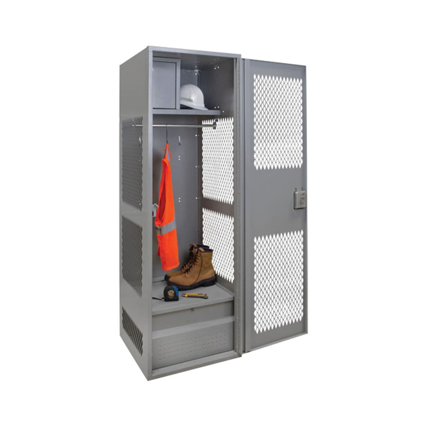 Casier pour équipement avec porte, 24 po x 24 po x 72 po, acier, gris, démonté