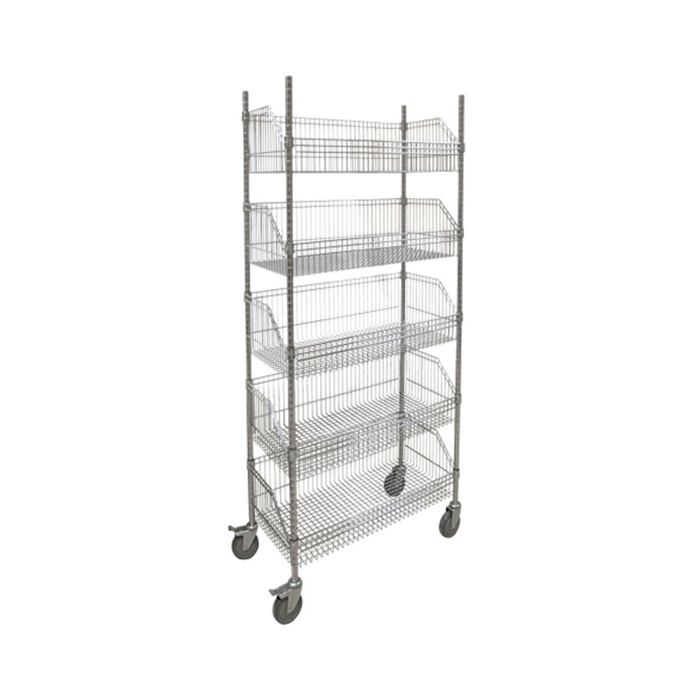 Chariot à tablette avec panier en treillis, 5 tablettes, 36 po x 18 po x 80 po