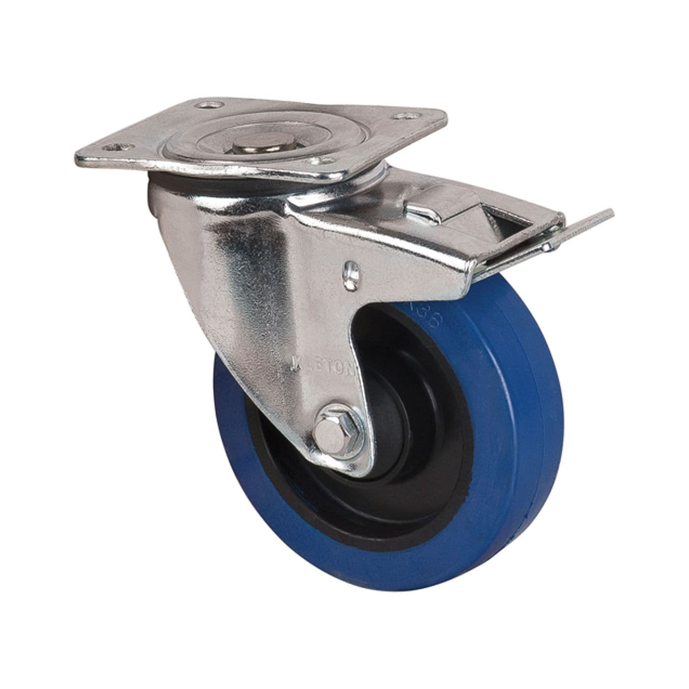Roulette bleue, pivotante avec frein, caoutchouc, 5 po (127 mm), 400 lb (181 kg)