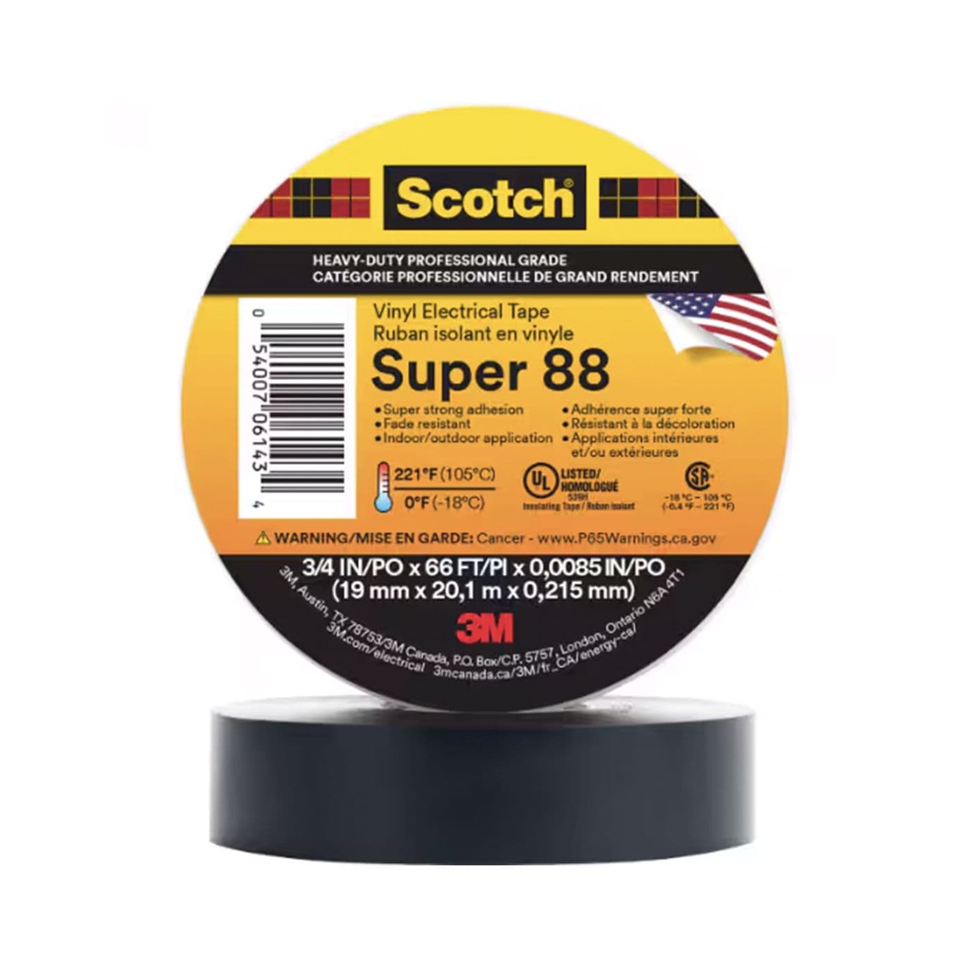 Ruban isolant en vinyle Super 88 ScotchMD de qualité professionnelle, noir, 19 mm x 20,1 m x 0,22 mm
