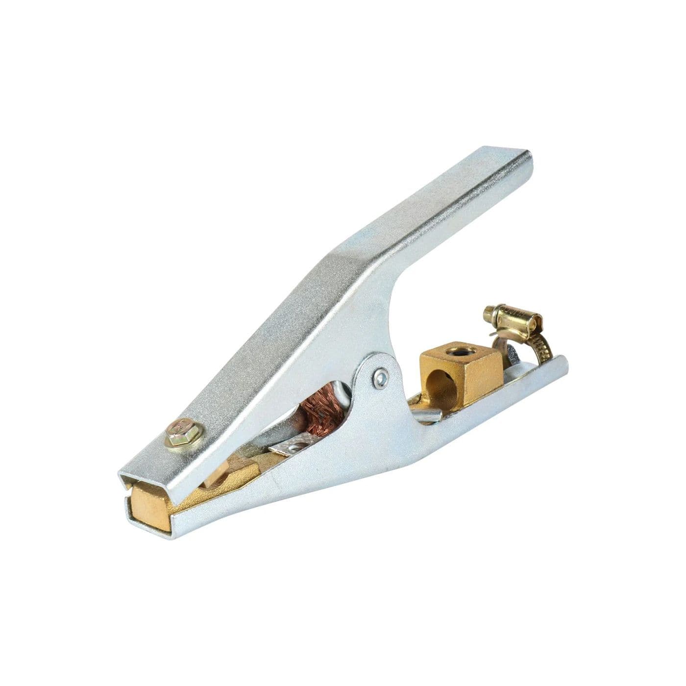 Pinces de masse standard de type Alerco pour soudage. Ce modèle est idéal pour les clients qui souhaitent insérer rapidement et facilement le câble de soudage dans le raccord sans avoir à souder. Il est également parfait pour les clients qui recherchent une bonne conductivité à un prix abordable.