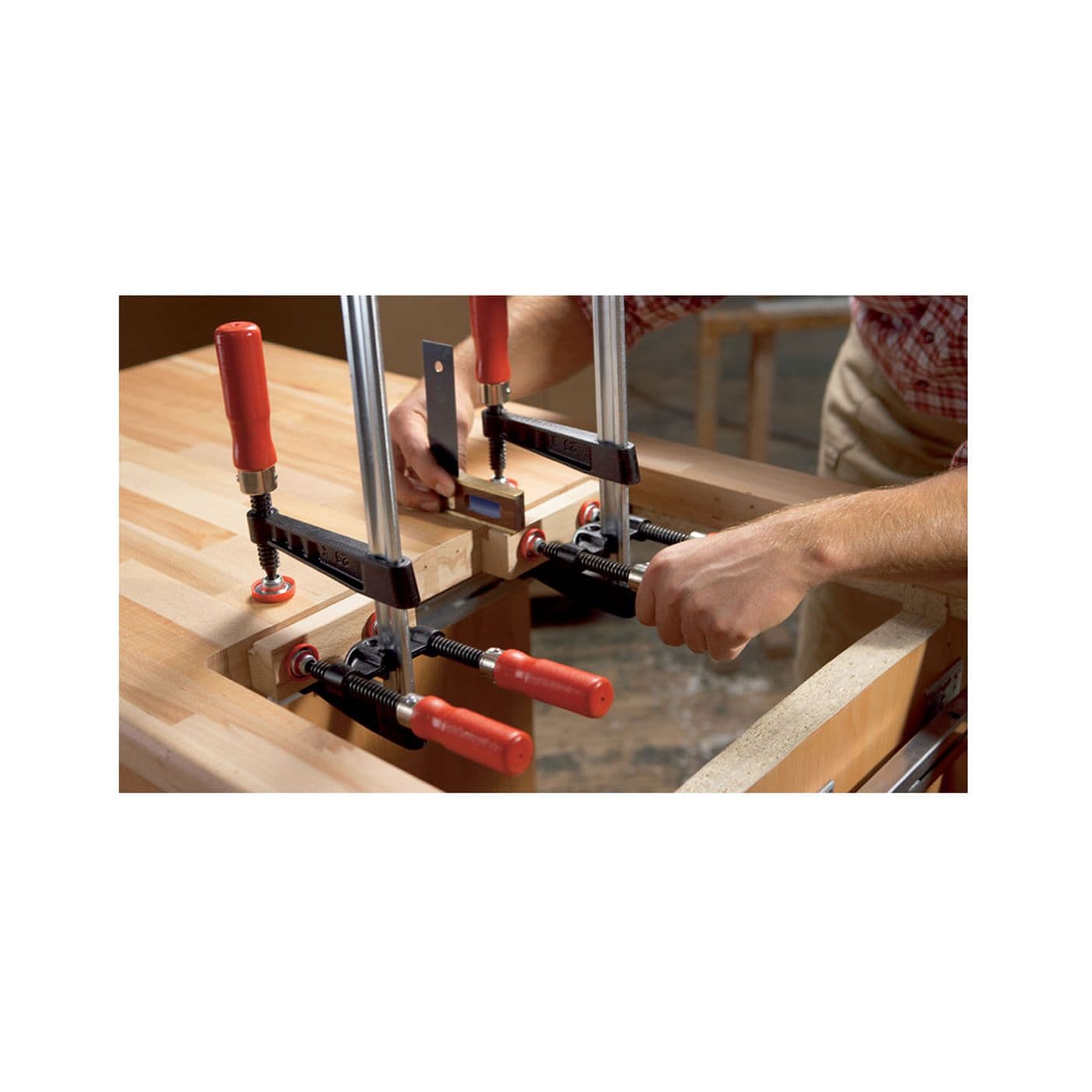 Avez-vous besoin d’effectuer des projets de bordures, mais pas assez souvent pour justifier l’achat de serre-joints spécialisés? Jetez un œil aux accessoires de serrage de bord KT5-1 et KT5-2 de BESSEY. Ils constituent une option économique qui peut transformer vos serre-joints en « F » existants en serre-joints de bord. Peuvent être utilisés avec la plupart des serre-joints qui ont une épaisseur de rail de 1/2 po ou moins. BESSEY. Simply better.