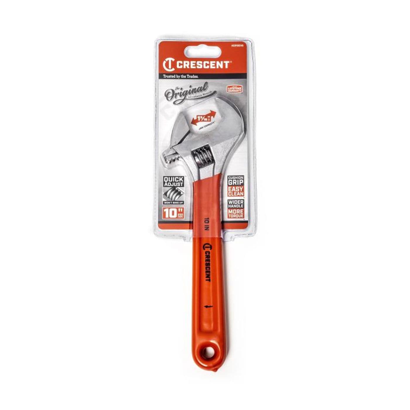 Les clés à molette réglables de Crescent sont dotées d’une poignée large en plastique durable et confortable. Une large molette permet un réglage facile et une mâchoire hexagonale bien ajustée réduit le glissement et serre fermement la fixation pour un fonctionnement solide et sûr. La finition chromée résistante à la corrosion permet d’éviter la rouille.