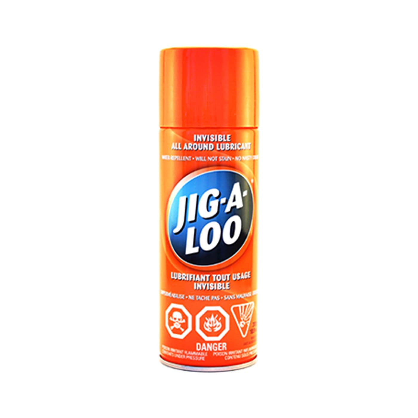 Jig-A-Loo est un lubrifiant sans pareil qui ne contient ni huile, ni graisse, ni cire, ni détergent. Il est incolore et sans taches. Jig-A-Loo élimine les grincements, décoince à peu près n’importe quoi et protège les surfaces contre la rouille, les intempéries et la saleté. Jig-A-Loo est idéal pour les surfaces de bois, de métal, de cuir, de tissu et pour la plupart des surfaces de plastique.