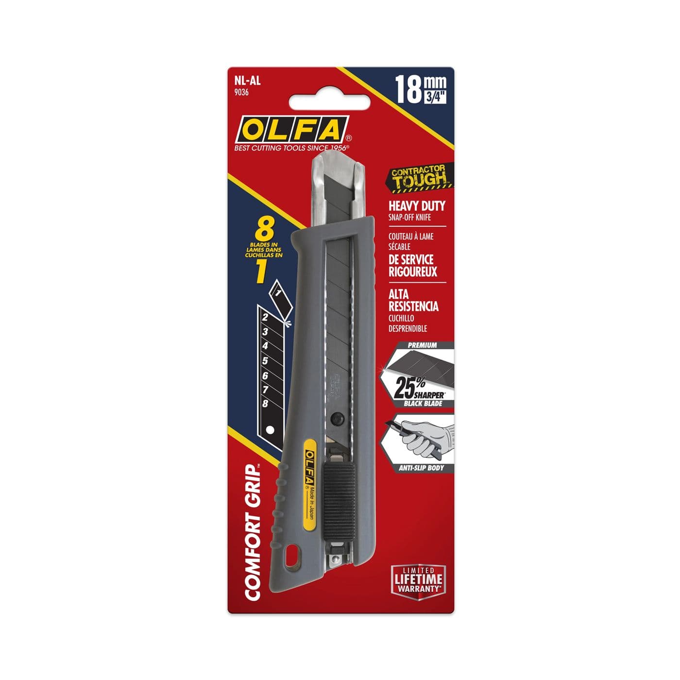 Couteau utilitaire à verrouillage automatique en caoutchouc, lame 18 mm
