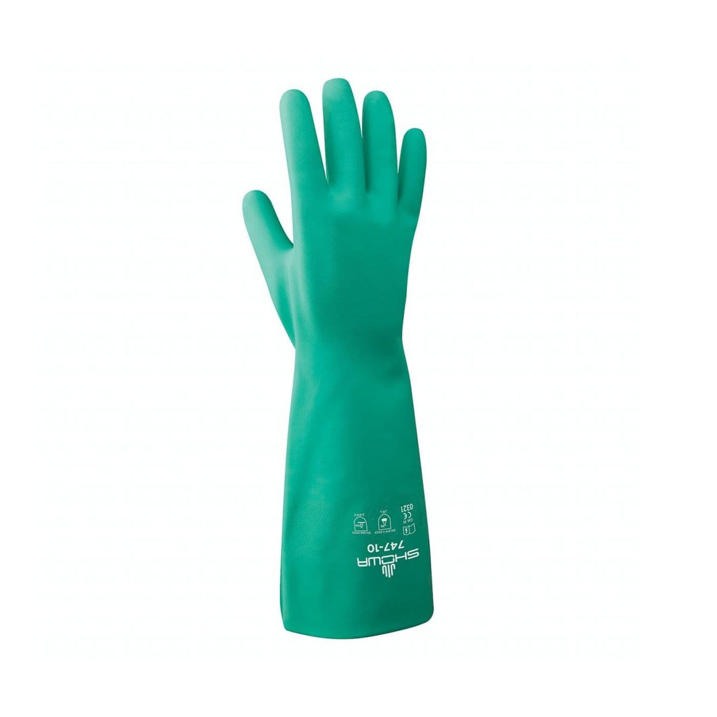 Le gant résistant aux produits chimiques SHOWA 747 est prolongé de 19 pouces (480 mm) pour protéger contre toute une série de risques. Conçu dans un souci de performance, le 737 se compose à 100% de nitrile pour créer une protection imperméable. La surface de préhension micro-texturée assure le travail en milieu humide, tandis que la doublure effet velours facilite l’enlèvement du gant.