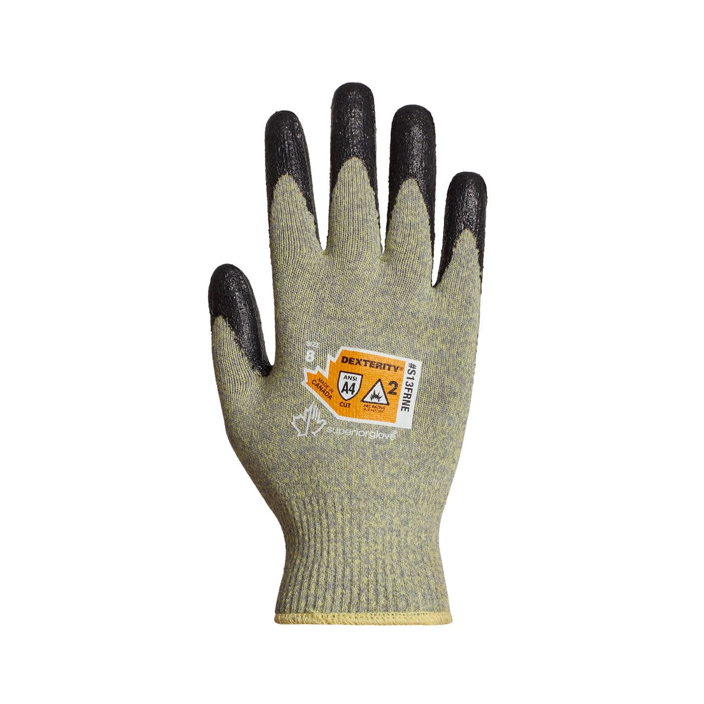 Les gants S13FRNE DexterityMD, homologués pour les éclairs d’arc électrique, offrent une protection contre les risques de coupure et les bords non finis. Classés arcs électriques niveau 2 avec une ATPV de 11 cal/cm2, ils sont fabriqués à partir de ParaActivMC et offrent une protection contre les coupures à 360° avec une résistance à la coupure ANSI A4. Ces gants sont également dotés d’un revêtement de paume en néoprène connu pour sa résistance aux flammes, ce qui garantit une bonne prise en main.