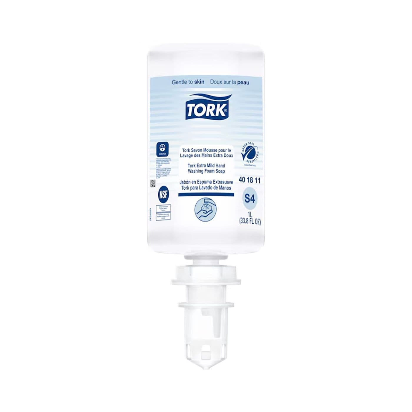 Le savon mousse extra doux de Tork est doux pour la peau, sans colorants ni parfums ajoutés. Composé d’ingrédients doux et hydratants, ce savon a été testé sous contrôle dermatologique et convient à une utilisation fréquente. Le savon mousse extra doux mousse bien et se rince facilement. Cette formule est triplement certifiée par NSF, Green Seal, et Ecologo, contribuant à soutenir les objectifs de développement durable. Compatible avec les distributeurs de soin de la peau Tork S4, certifiés « faciles à utiliser » et offrant une bonne hygiène des mains à tous les utilisateurs.