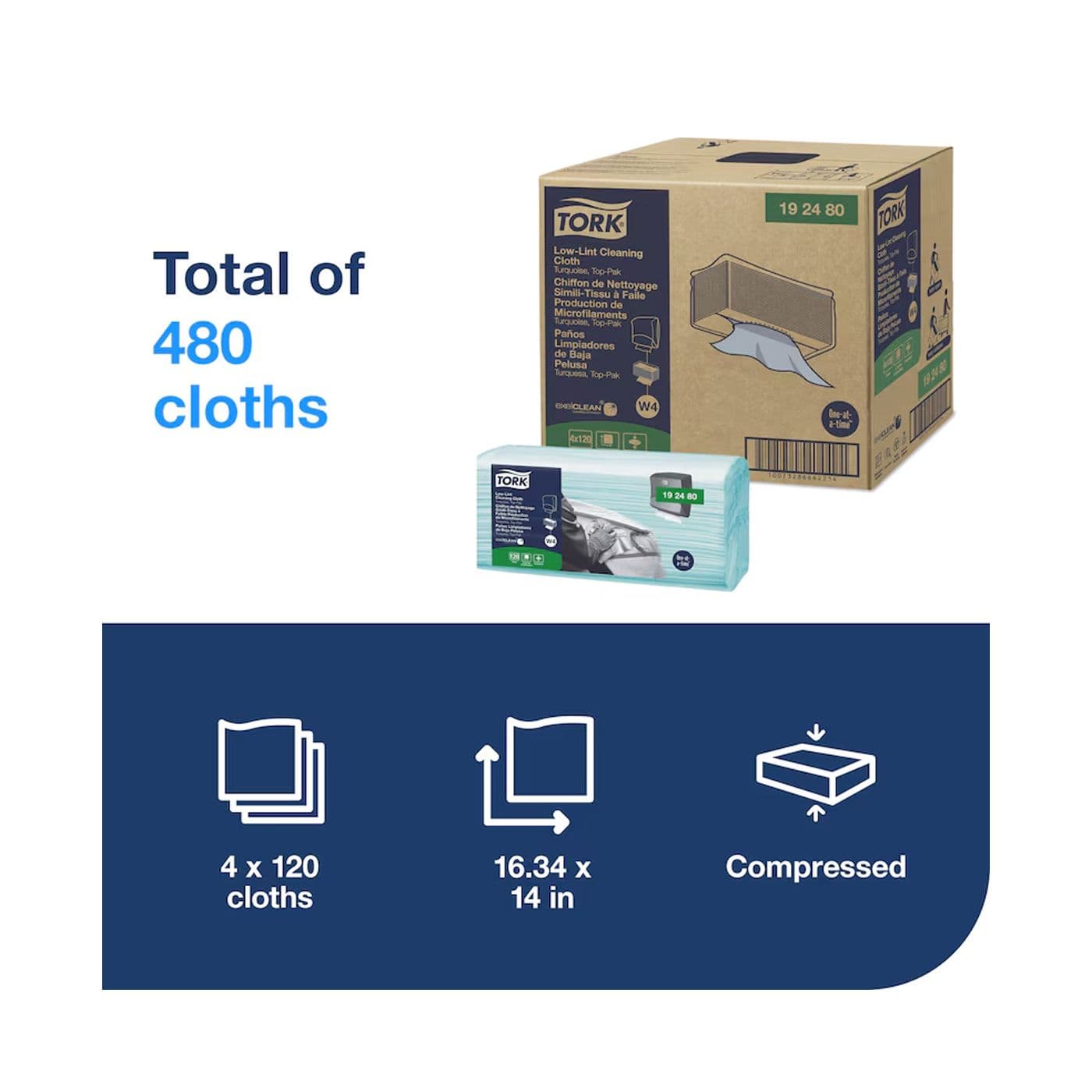 Chiffon simili-tissu de nettoyage à faible production de microfilaments, 120 feuilles, 16,4 x 13,5 po